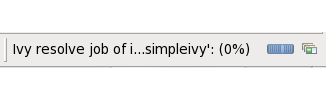 In the Main tab, ivy.xml is set as Ivy File. Leave the Configurations to default. For the moment, don’t bother about other tabs - Settings, Retrieve and Advanced - which we use in the next chapter. Click Finish. This will add a library managed by IvyDE to the project build path. As soon as you hit the Finish, IvyDE triggers a resolve and gets into the job of resolving the dependencies mentioned in the ivy.xml. It checks whether Rev 2.6 is in the cache else fetch it from public. Progress Bar at the bottom shows the IvyDE resolve job’s progress.