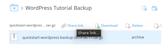 quickstart-wordpress-backup-2014-06-11.tar.gz from the Dropbox and saves